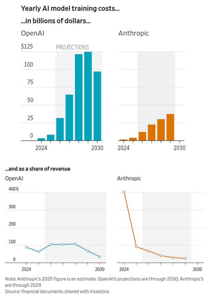 OpenAI does not expect to break even until the 2030s, while Anthropic may reach profitability sooner. This highlights a key issue: AI is profitable at the product level, but extremely expensive at the infrastructure level.