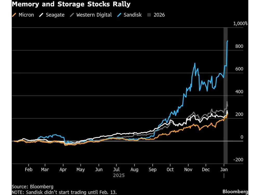 The stock market’s best-performing theme of 2025 is still running in early 2026: memory and storage names, lifted by the AI infrastructure spending boom, are again sitting near the top of the leaderboard.