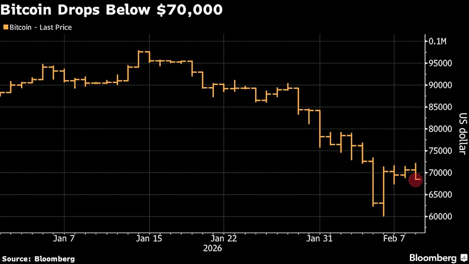 The world’s largest cryptocurrency fell about 2% to around $69,000 in New York trading, after a turbulent week that saw prices plunge to nearly $60,000, the lowest level since October 2024, before rebounding sharply. Volatility spiked to levels last seen during the 2022 FTX collapse, underscoring how fragile sentiment remains.
