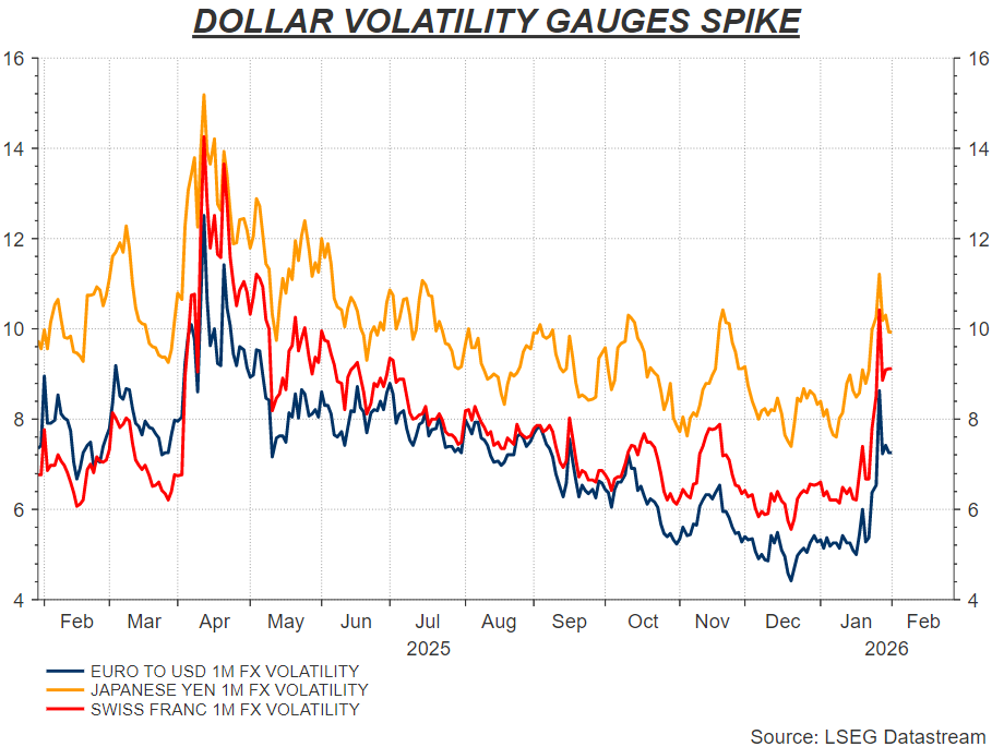 Volatility in the nearly $10 trillion-a-day FX market is climbing fast. Expected three-month volatility in the euro-dollar pair hit its highest level since July, underscoring investor unease.