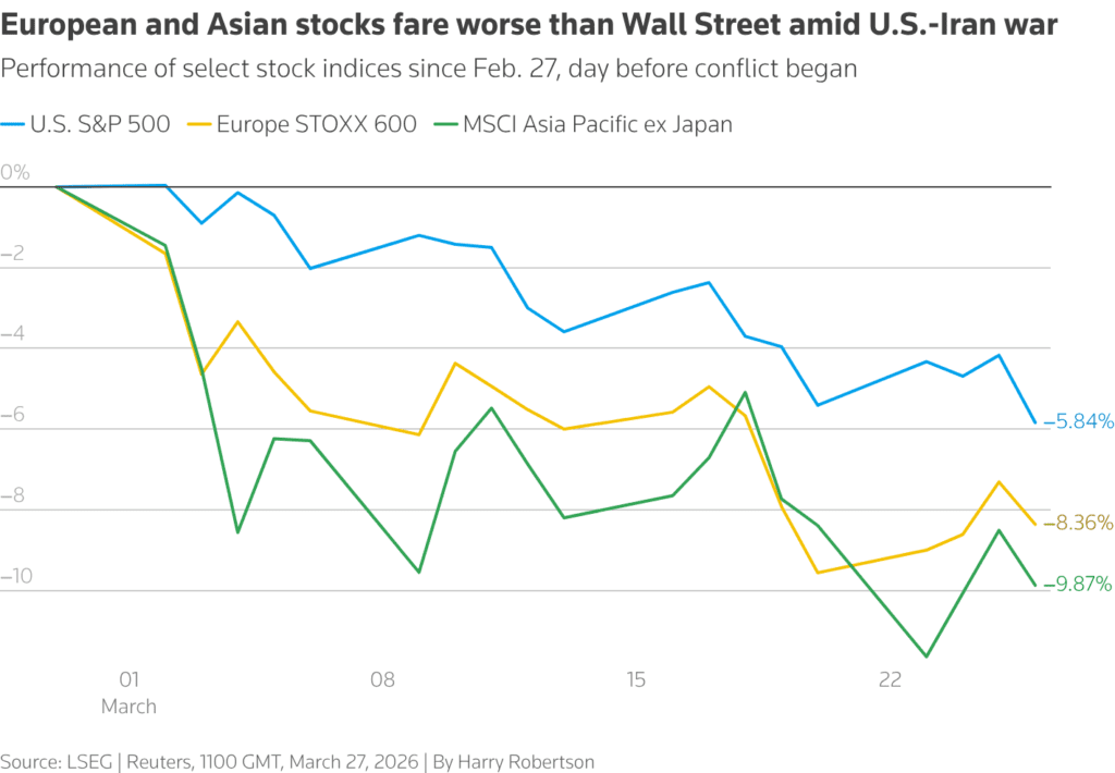 The continued selloff reflects a market increasingly dominated by geopolitical risk, as investors struggle to find clarity on how the Iran conflict will evolve.