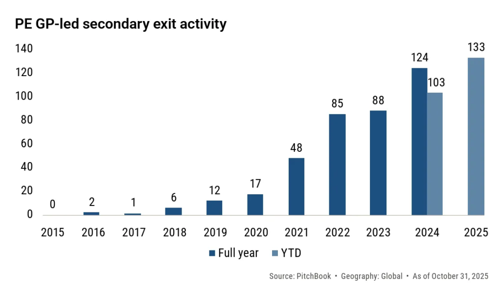 From 2023 through 2025, continuation vehicles became the main liquidity tool for private equity managers. With IPO markets largely closed and M&A activity muted, GP-led secondaries acted as a release valve for aging funds and impatient LPs.