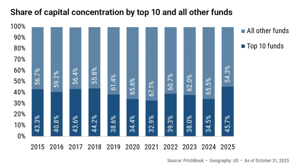 The message for 2026: exits may normalize, but fundraising pressure below the top tier is not going away.
