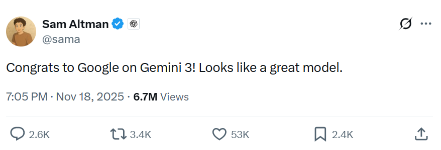 The model’s arrival was met with rare applause from rivals. Nvidia (NASDAQ: NVDA) congratulated Google in a post on X, calling its progress impressive while reminding investors that its GPUs still offer “greater performance, versatility, and fungibility than ASICs.” OpenAI CEO Sam Altman also chimed in, calling Gemini 3 “a great model.”