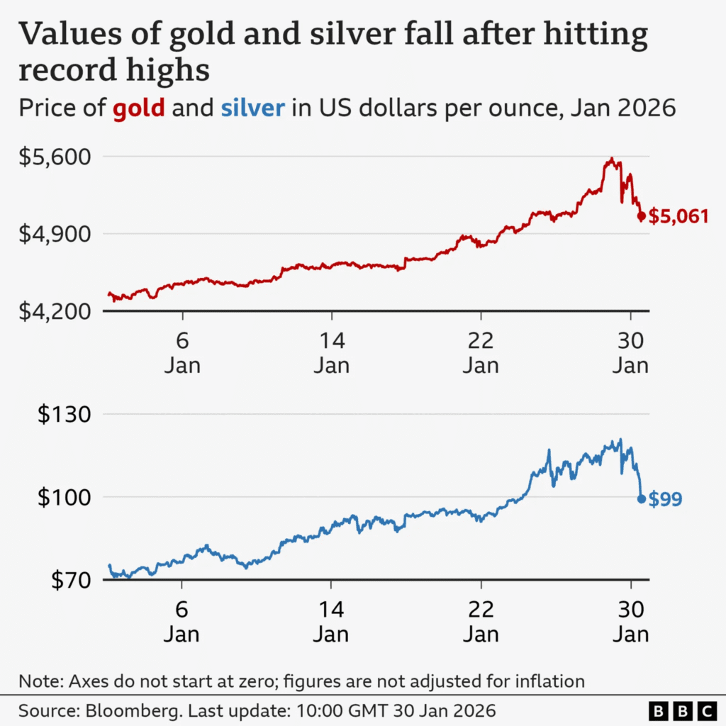 Warsh is viewed by markets as a more predictable and orthodox choice compared with other potential nominees. That reduced fears of extreme interest-rate cuts, runaway inflation, and further dollar collapse. As those risks eased, investors took profits in gold, silver, and platinum.