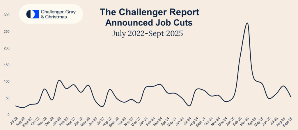 At the same time, layoff announcements hit 946,426 so far in 2025 — already the highest since 2020 — and could surpass 1 million by year-end. September alone saw 54,064 job cuts, down from August but still reflecting persistent weakness across key sectors.