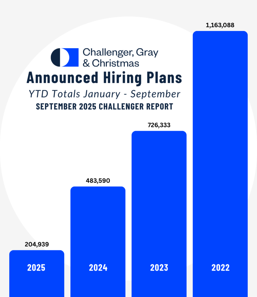 According to Challenger, Gray & Christmas, employers have announced plans to add just 204,939 jobs year-to-date, down sharply from 483,590 at this point last year. It marks the lowest total since 2009, when companies were still reeling from the financial crisis.