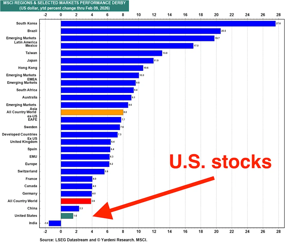 After a decade where “buy US, ignore the rest” worked consistently, 2026 is testing that assumption. The world is in a global bull market. Capital is flowing. The difference is where it is flowing.