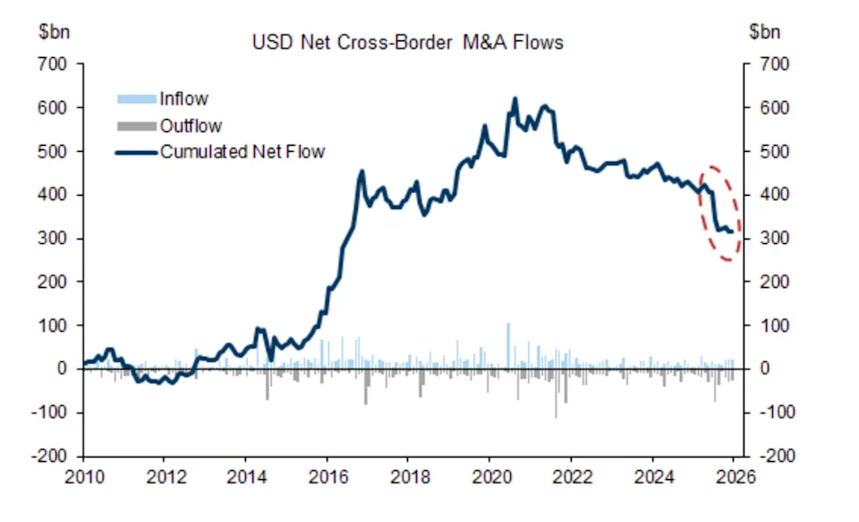 With the dollar down nearly 10% year over year, foreign investors face a currency haircut when converting US gains back into local currencies. A 10% currency loss can wipe out equity returns.