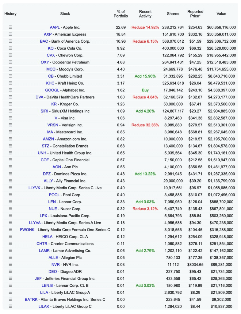 Beyond the big Alphabet reveal, Berkshire was active across the portfolio: