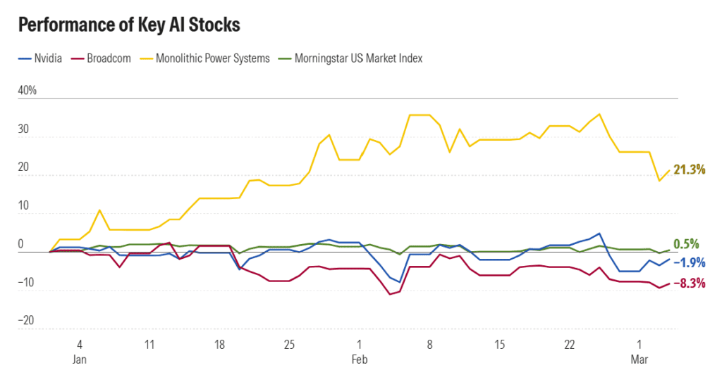 • Semiconductor firms like Monolithic Power Systems and Broadcom exceeded expectations