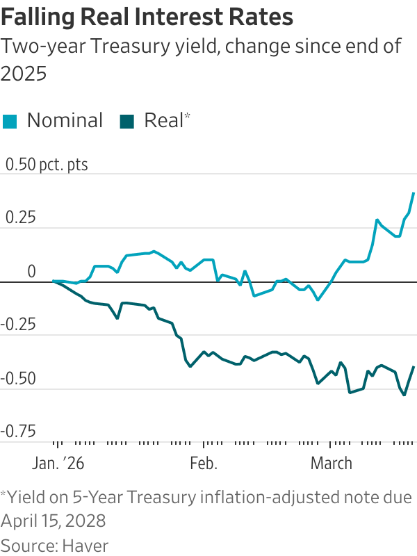 - If inflation rises while rates stay the same → real rates fall